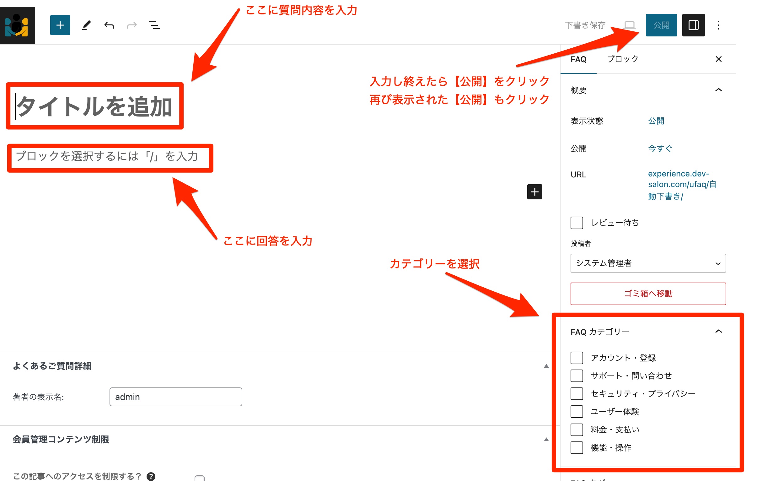 右側のFAQカテゴリーでは該当するカテゴリーにチェックを入れます。